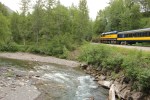 Although we took this train as a round trip tour, it also operates as a flag stop service, allowing passengers to hop on and off as they please. To disembark, they notify the conductor of the milepost where they wish to stop. To get back on, they wave of a flag. These people use the Alaska Railroad as their lifeline to haul necessary goods from the larger cities back to their homes in the wilderness. We saw people taking off groceries, tires, and building materials. The area around Twin Bridges was really beautiful. We were able to stop and get off the train to look for salmon. We saw trout, but no salmon. I also met Mary Lovel who has written books about her experiences homesteading the Alaska frontier. She autographed my copy of “Journey to a Dream”.